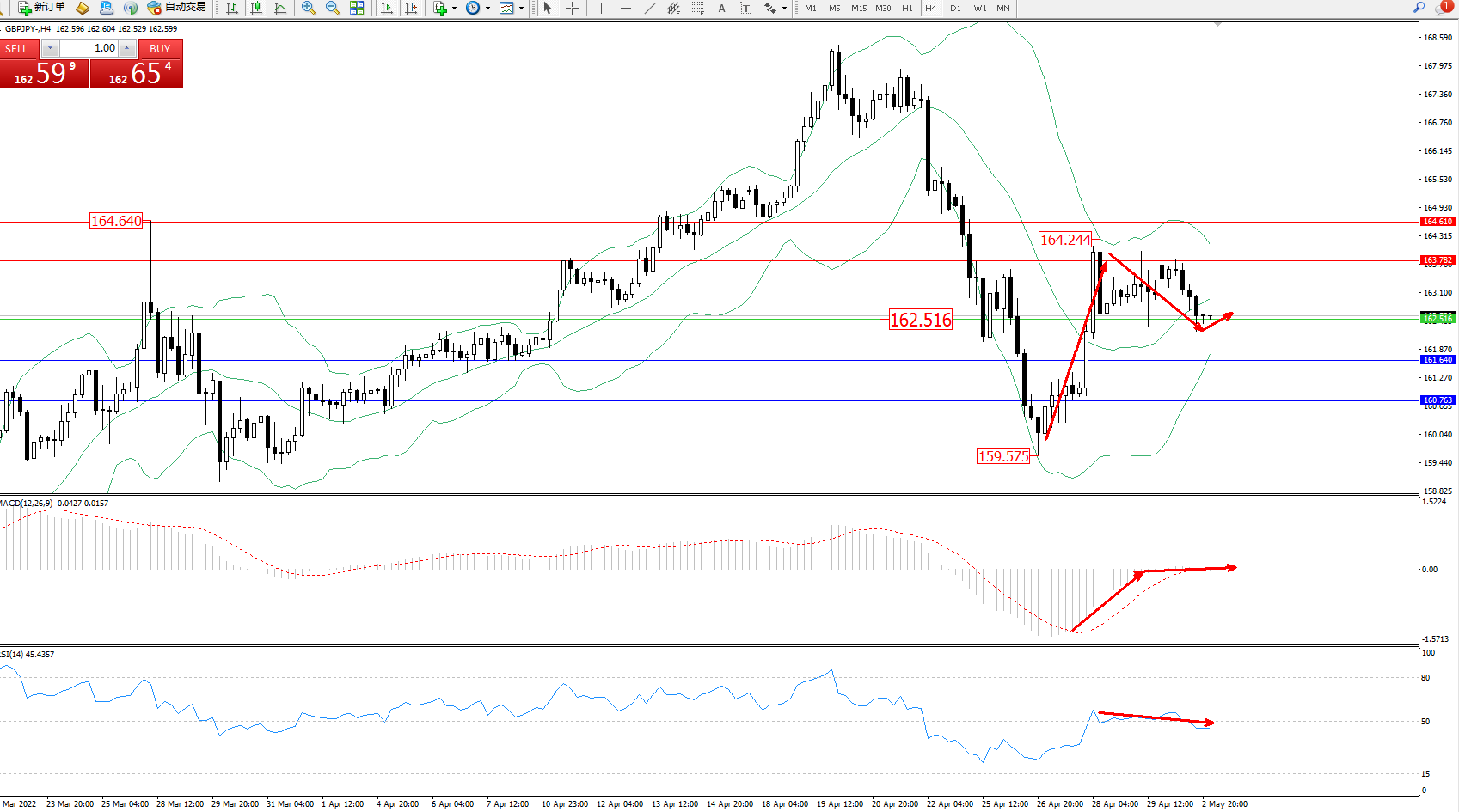 交易策略:162.516上方看涨,目标163.782、164.610