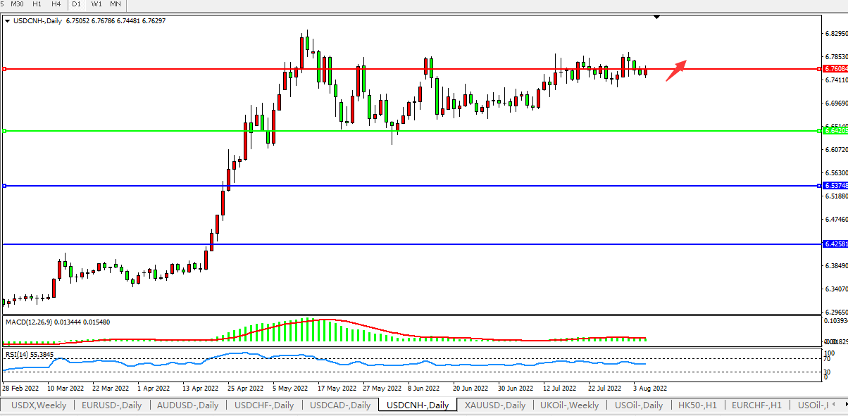 交易策略:在6.6420之上,看涨,目标价位为6.7600、6.8870