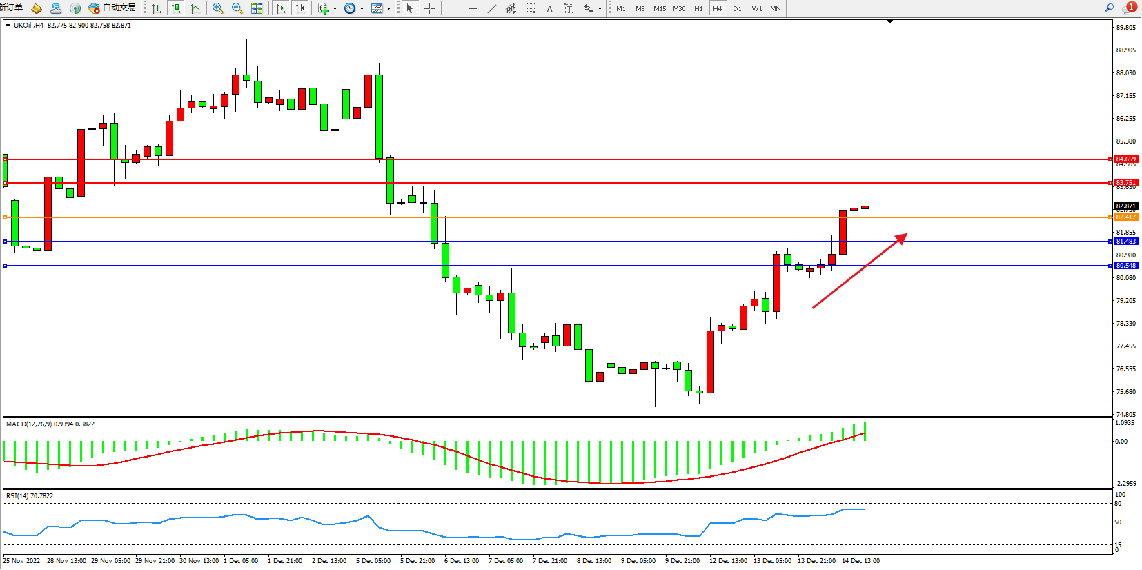 布油UKOil——4小时K线图显示: