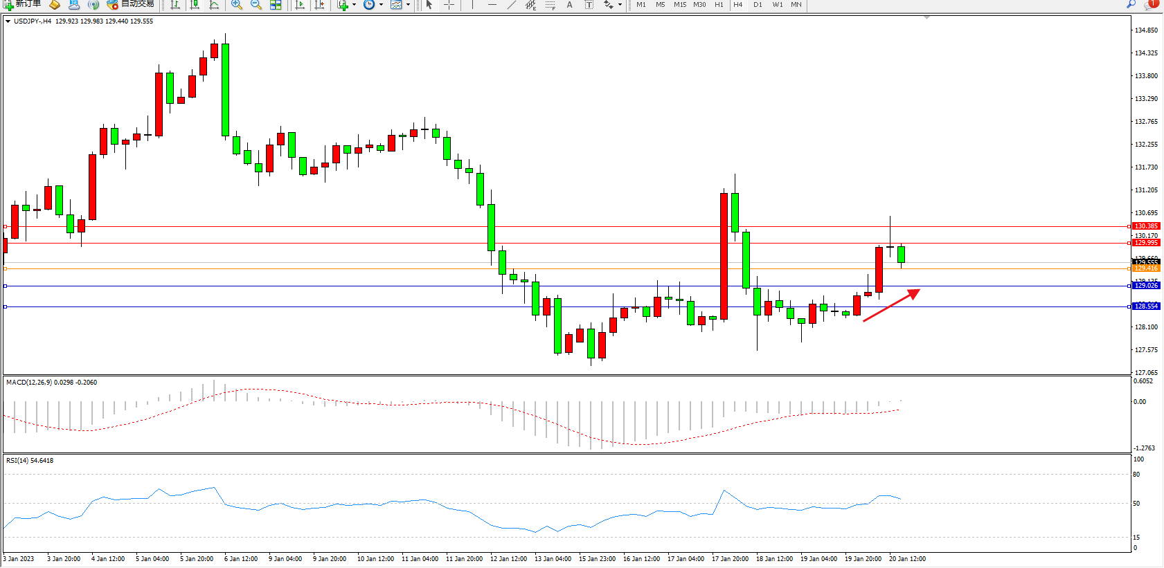 交易策略:129.416上方看涨,目标129.995、130.385