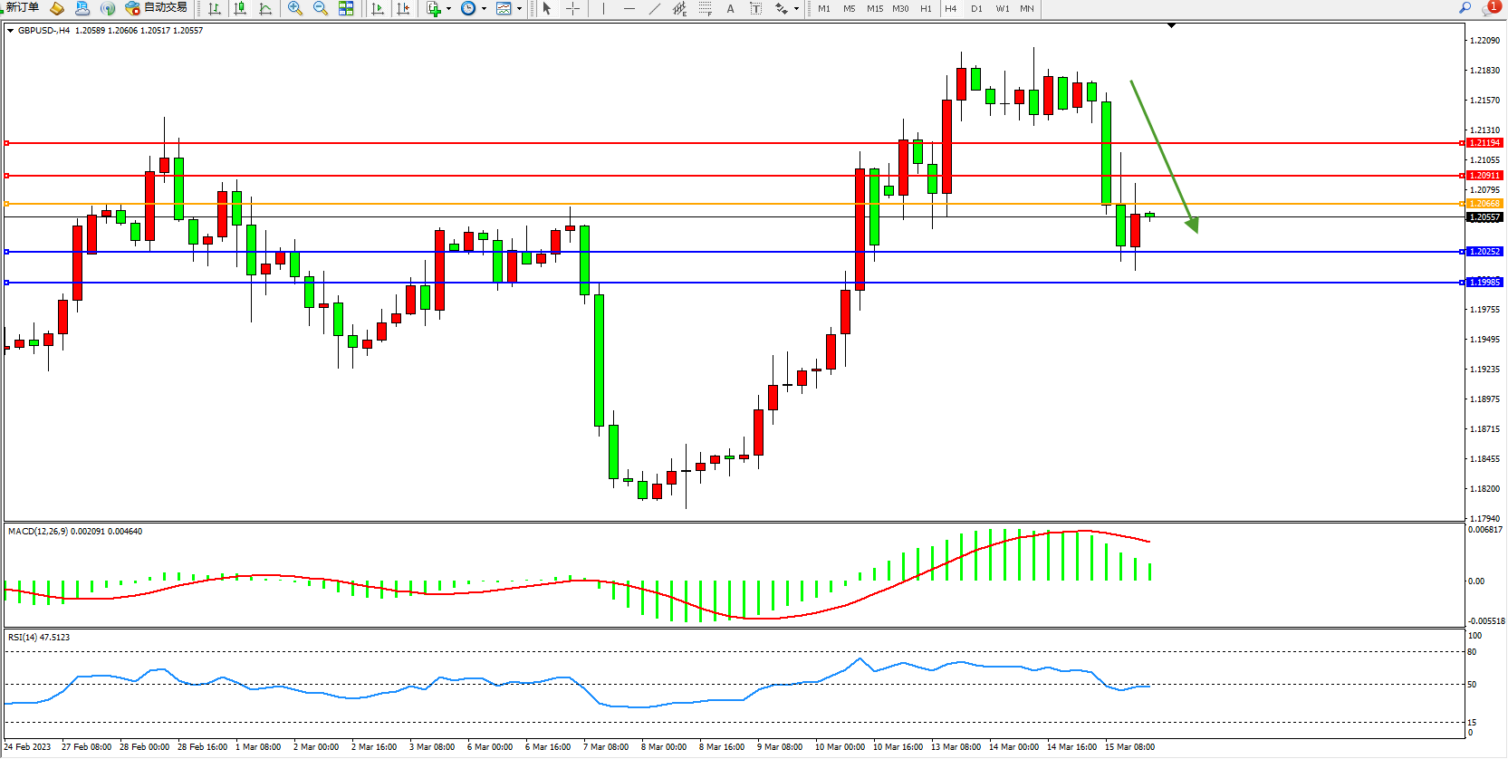 英镑美元GBPUSD ——4小时K线图显示: