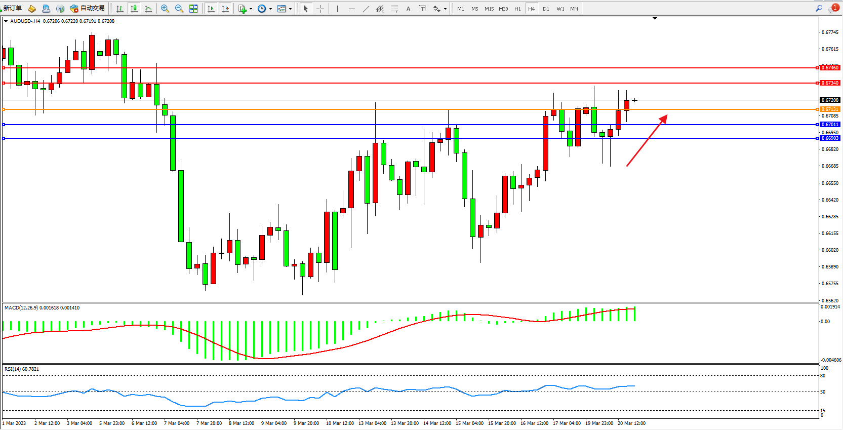 交易策略:0.67131上方看涨,目标0.67340 0.67460