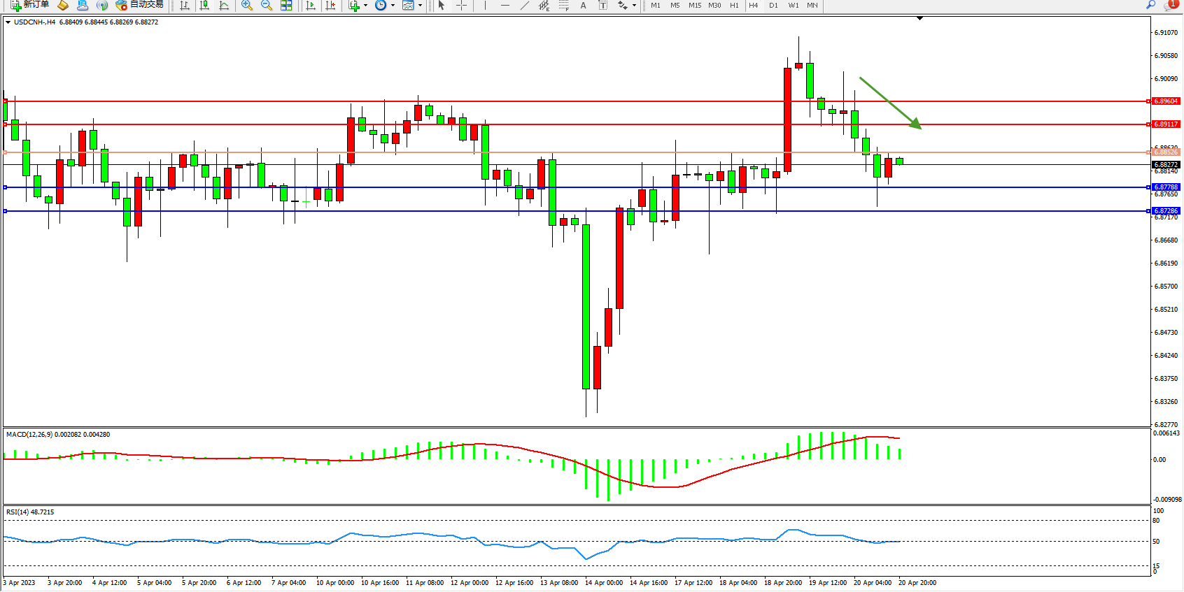 交易策略:6.88256下方看跌,目标6.87788  6.87286