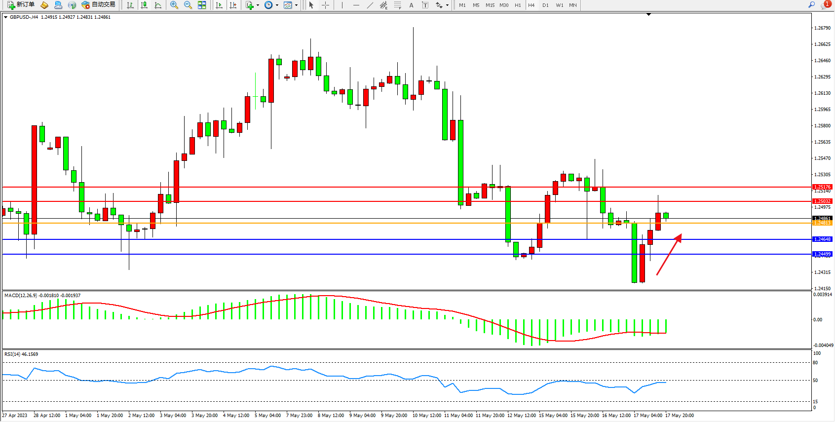 英镑美元GBPUSD ——4小时K线图显示: