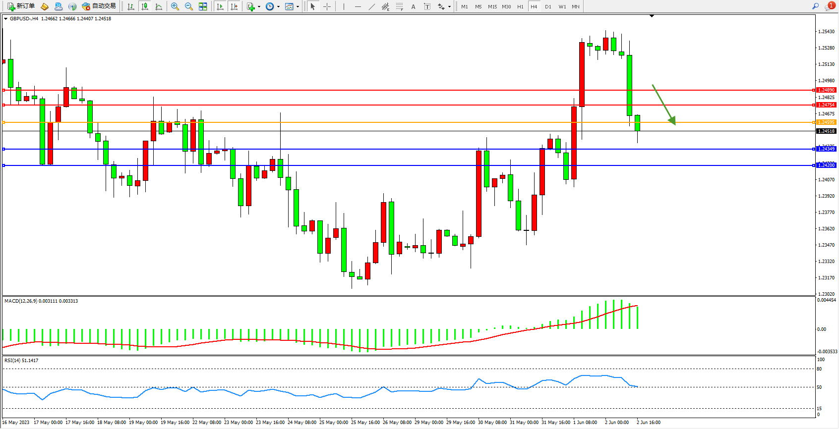 交易策略:1.24595下方看跌,目标1.24349 1.24200