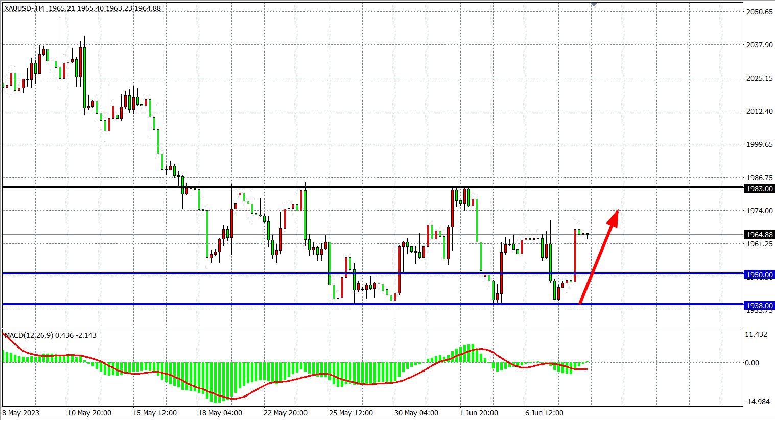 现货黄金XAUUSD 四小时图