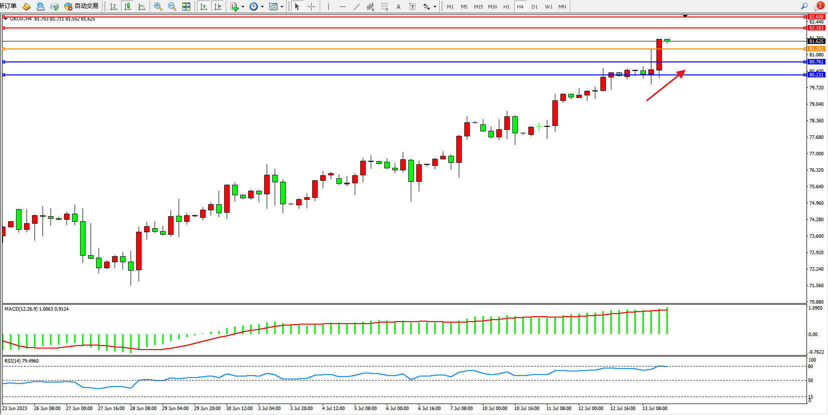 布油UKOil——4小时K线图显示: