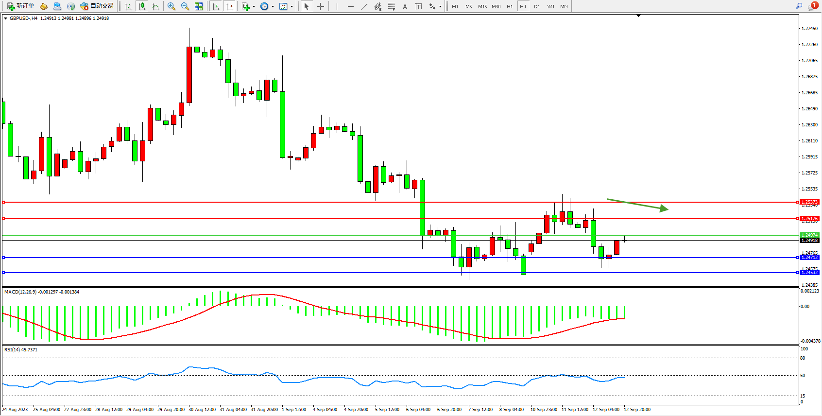 交易策略:1.24974下方看跌,目标1.24712 1.24532