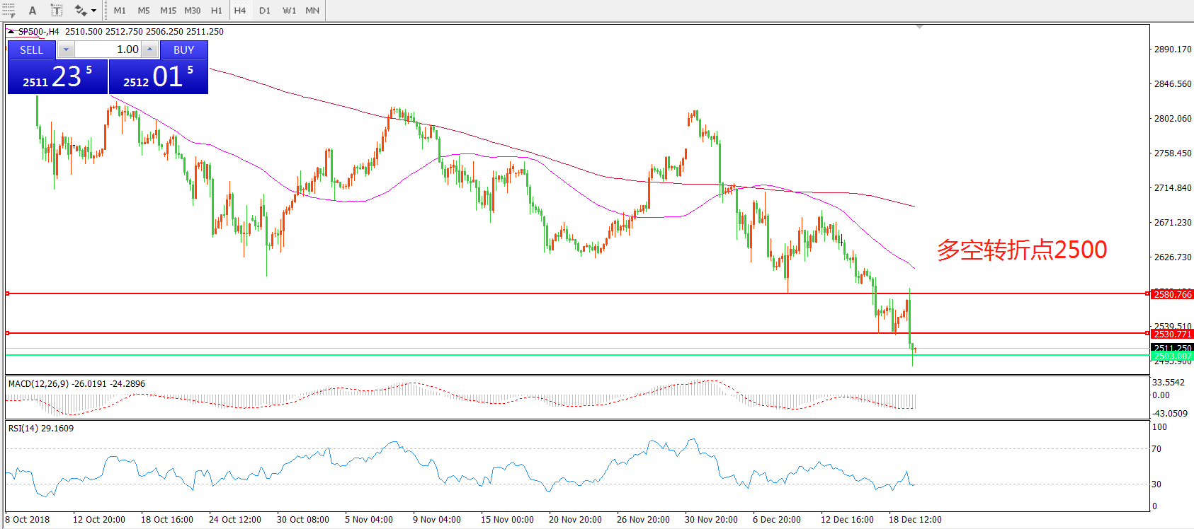 周三(12月19日),美联储公布了2018年最后一次FOMC利率决议,在加息决策公布前,美股三大指数基本平开后迅速走高,午盘前三大指数均涨超1%,加息决策公布后,标普500由涨转跌,最终标普500指数收跌39.20点,跌幅1.54%,创15个月收盘新低。