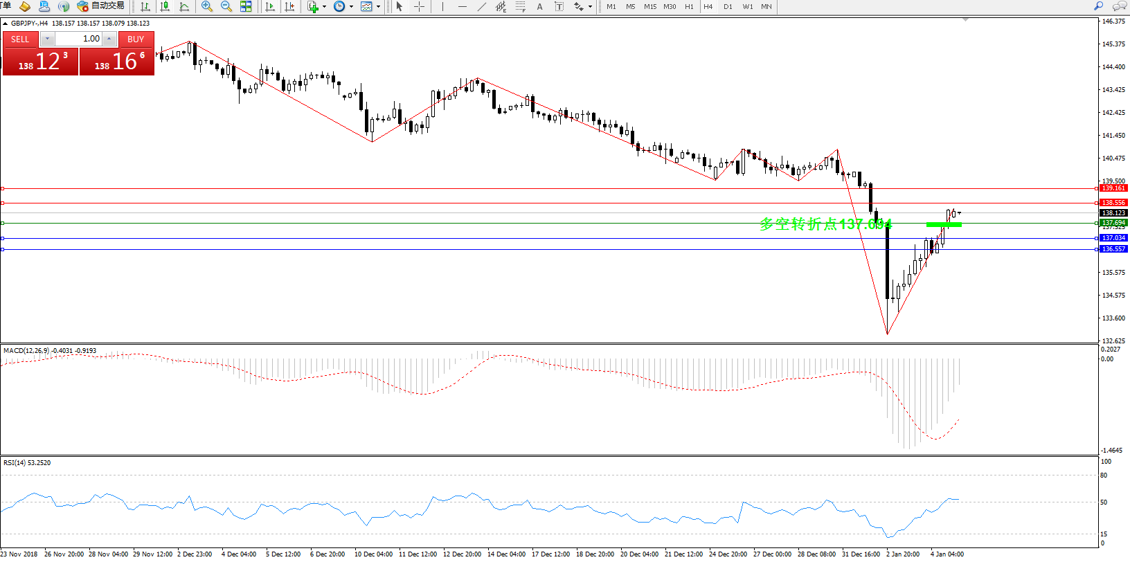 交易策略:137.694上方看涨,目标138.556、139.161