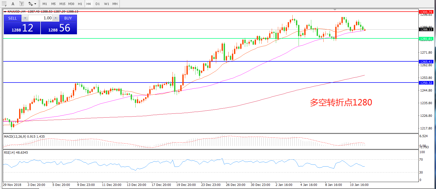 多空转折点:1280.00