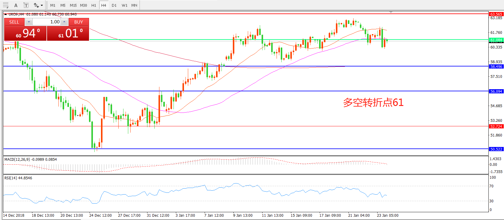 多空转折点:61.00