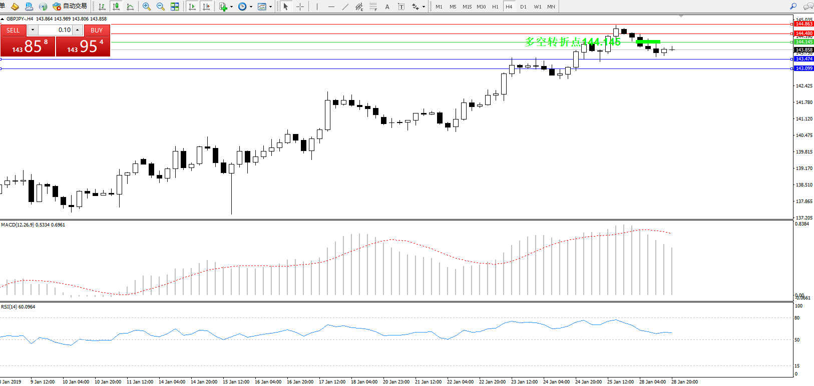 交易策略:144.145下方看跌,目标143.474、143.099