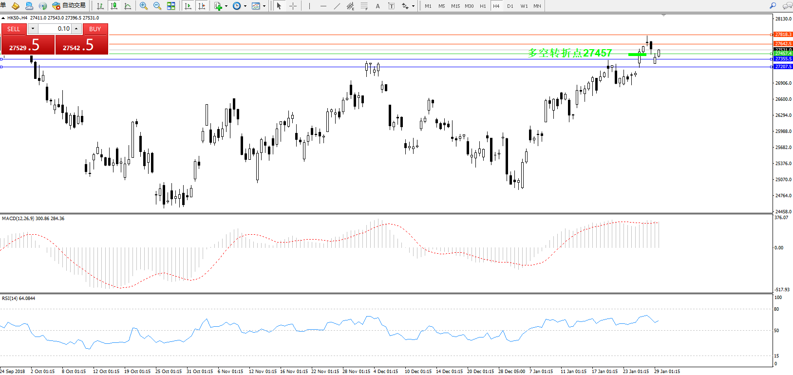 恒指HK50 ——4小时K线图显示: