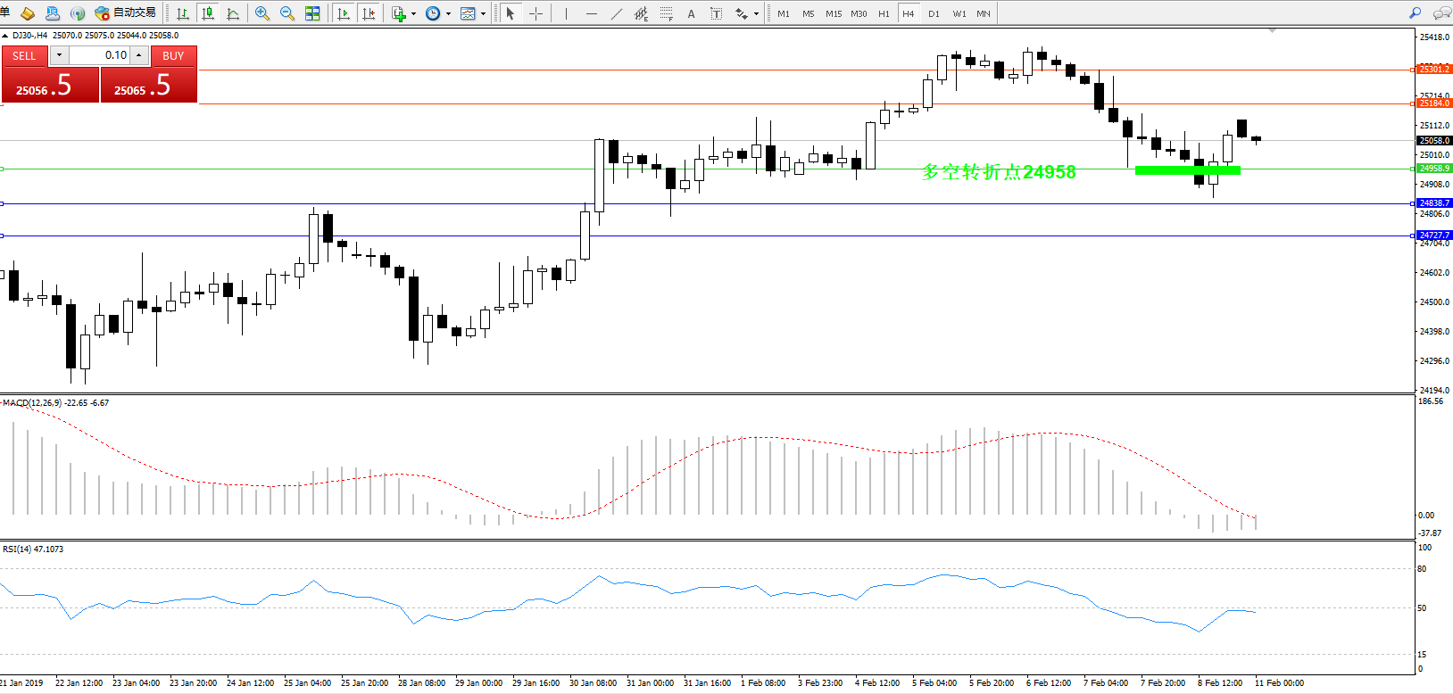 道琼斯工业平均指数收跌63.27点,跌幅0.25%,报25106.26点。美国财长和贸易代表率领的庞大团队周一将来华继续谈判,在中美贸易谈判持续左右风险情绪的情况下,市场需密切关注。