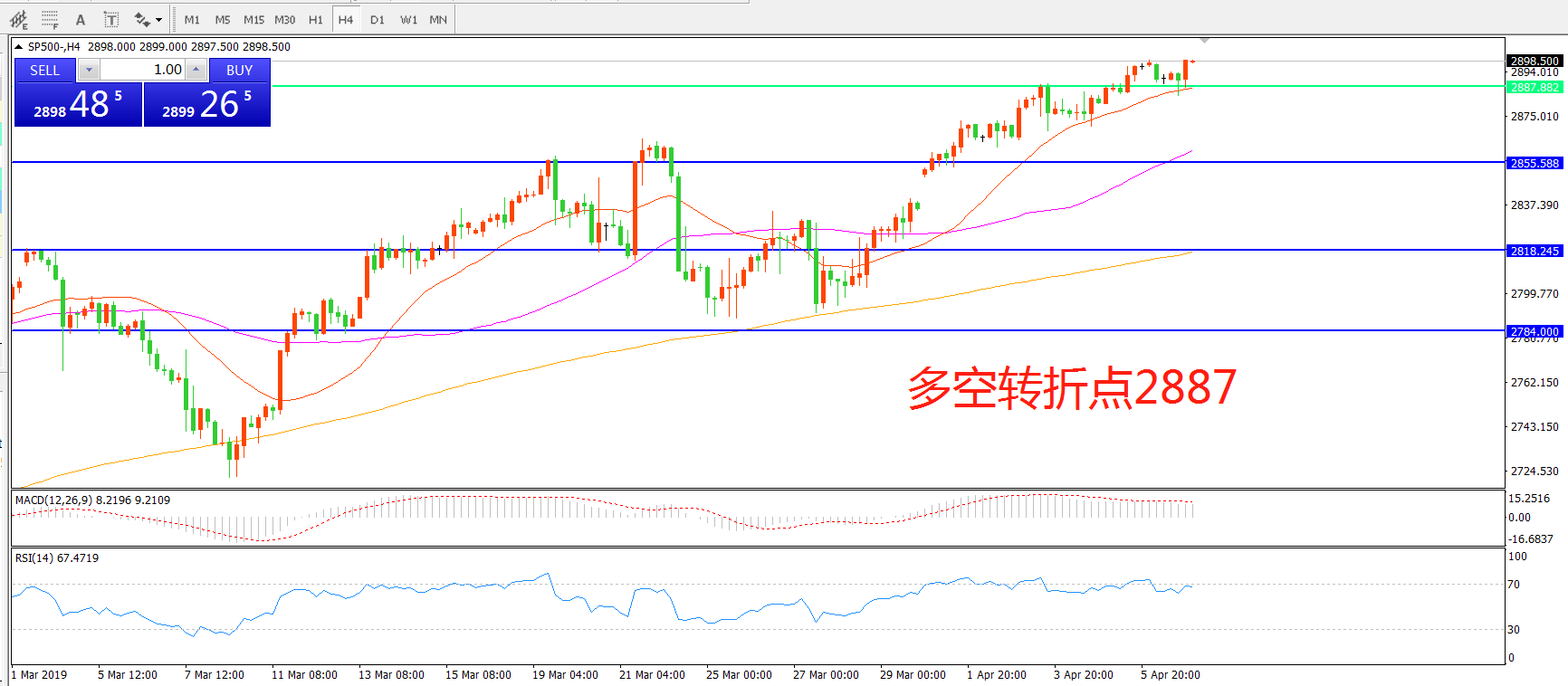 多空转折点:2887.00