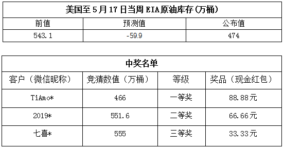 2019年5月第3期“EIA大竞猜”活动的中奖结果已出,获奖信息如下: