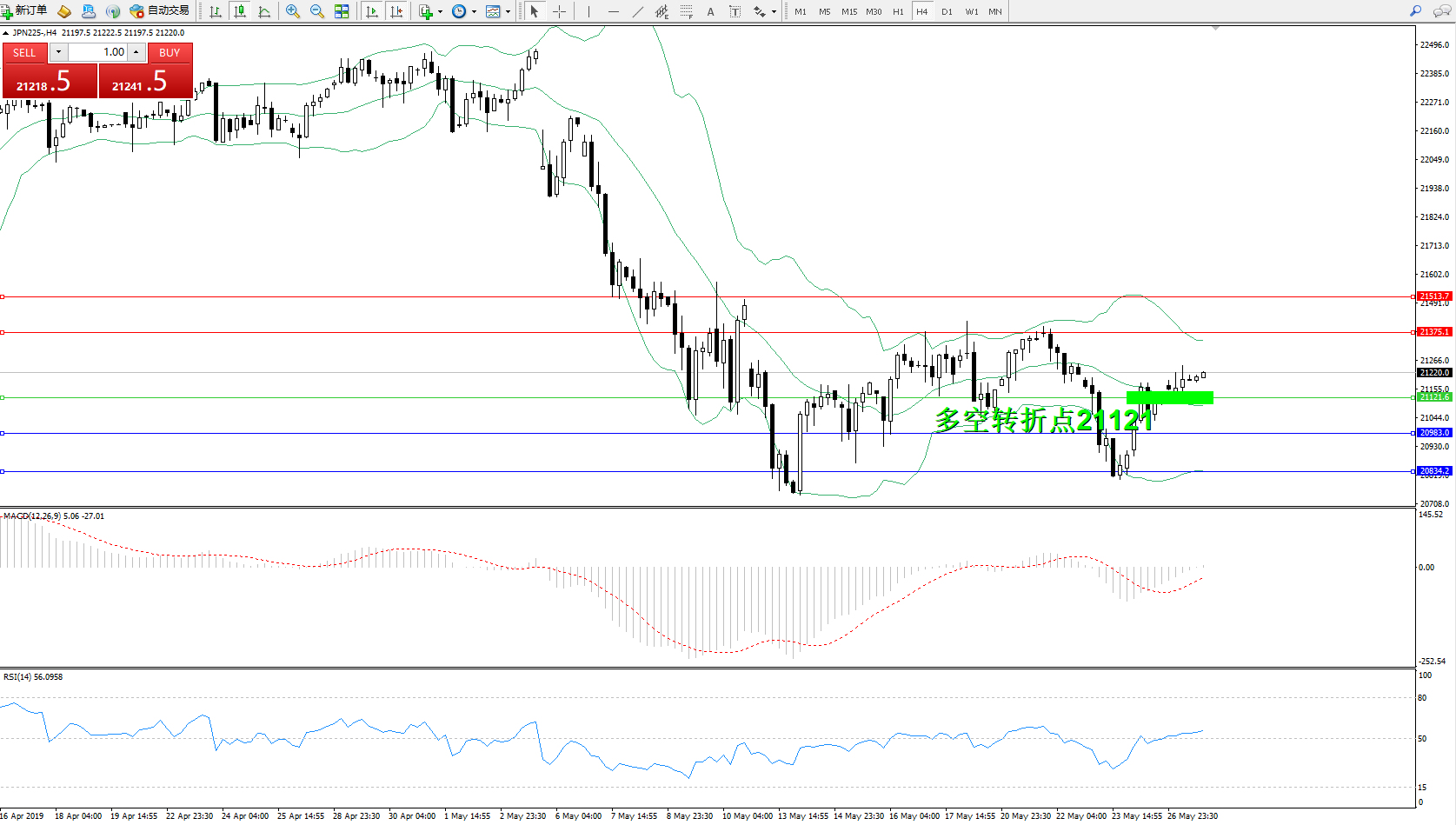交易策略:21121上方看涨,目标21375、21513