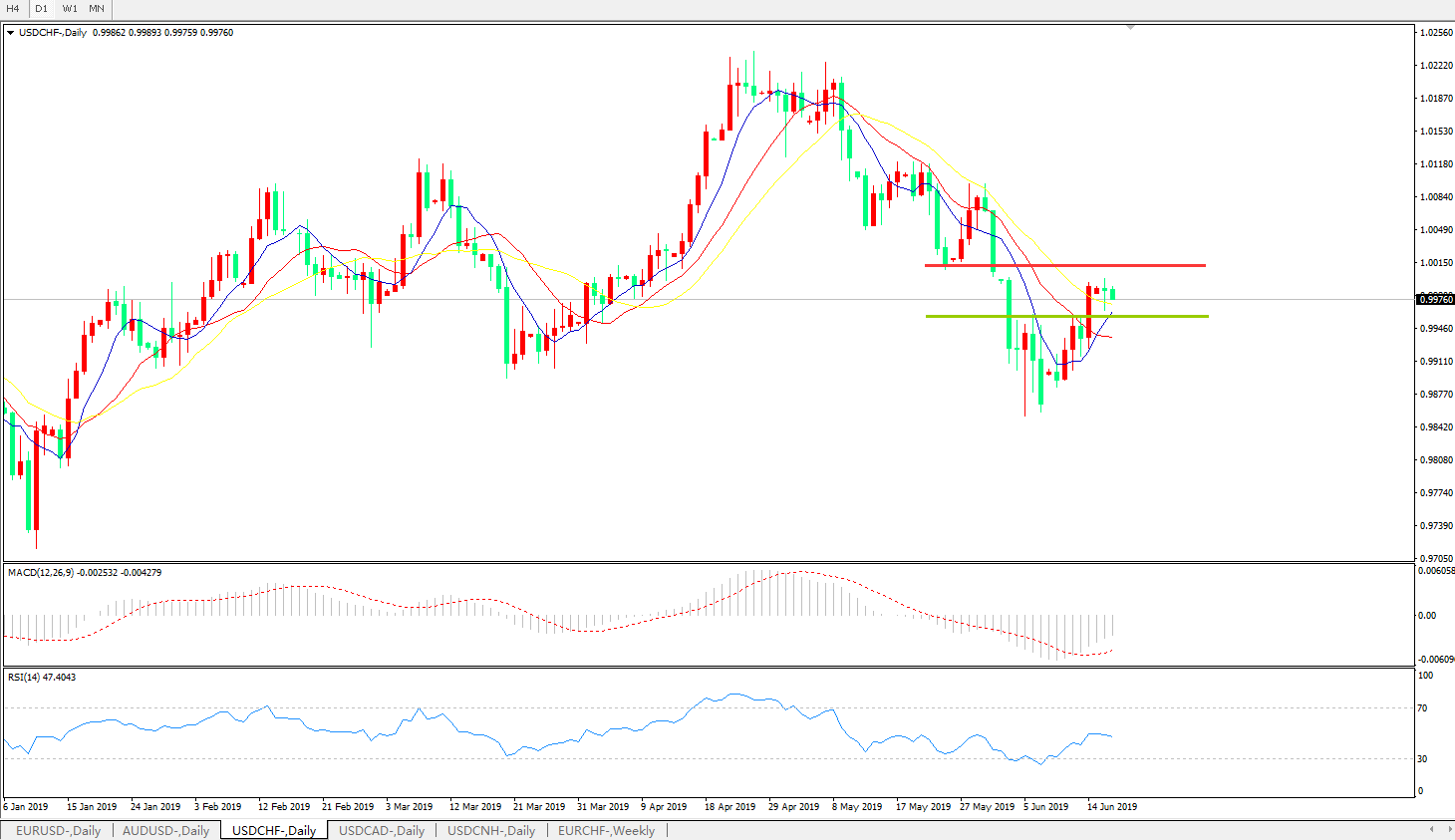 美元兑瑞郎USDCHF 日线图: