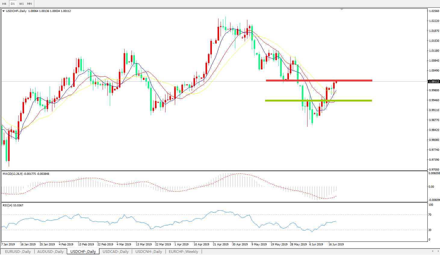 美元兑瑞郎USDCHF 日线图:
