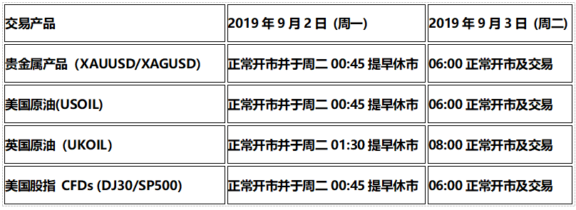 1.外汇货币对和其他股指产品的交易不受本次美国假期休市影响。