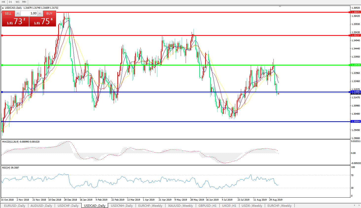 美元兑加元USDCAD    日线