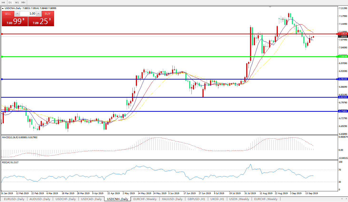 技术面简析:日图均线整体呈下行态势,汇价延续上行态势逼近7.10关口,MACD逼近0轴且动能萎缩几不可见,RSI止跌小幅走高,预计短期汇价将继续回落下行,上方重点关注7.10-7.20-7.30区间的压制;后续重点关注中美贸易谈判进展。