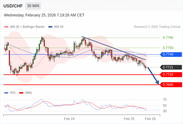 在 0.7740 之下,看跌,目标价位为 0.7710 ,然后为 0.7695 。