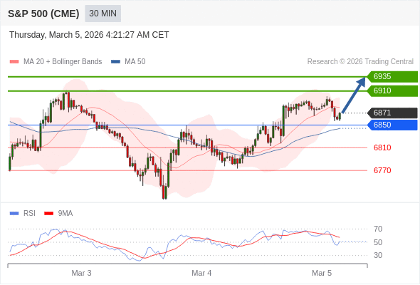 在 6850 之上,看涨,目标价位为 6910 ,然后为 6935 。