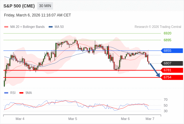 在 6855 之下,看跌,目标价位为 6781 ,然后为 6754 。