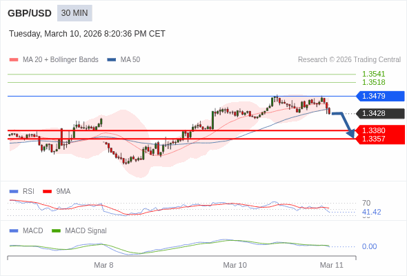 英镑/美元 当日内 : 看跌,当 1.3479 为阻力位。