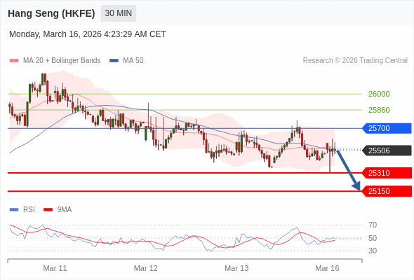 香港恒生指数期货 当日内: 短期关键阻力位在25700。