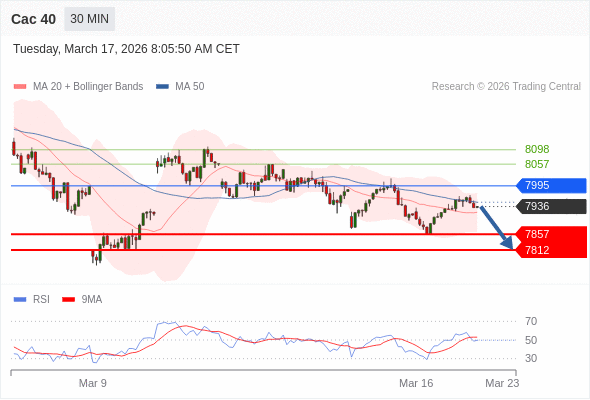 在 7995 之下,看跌,目标价位为 7857 ,然后为 7812 。