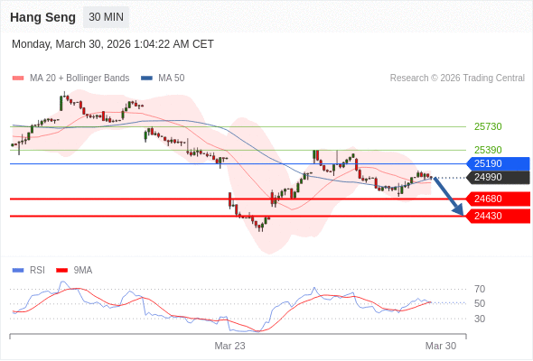 在 25190 之下,看跌,目标价位为 24680 ,然后为 24430 。
