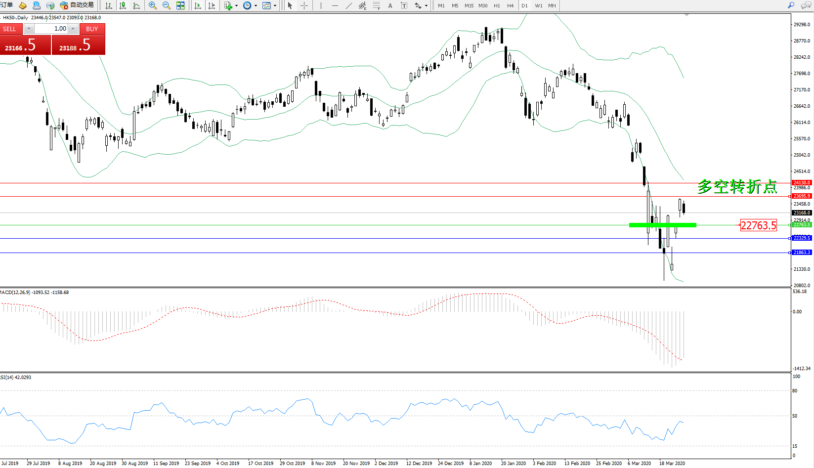 恒指HK50 ——日K线图显示: