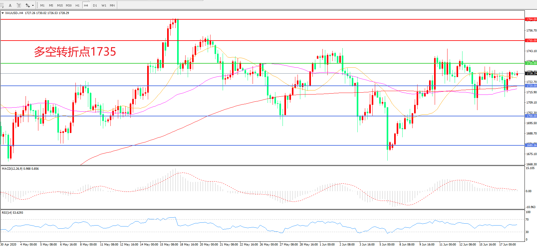 多空转折点:1735.00