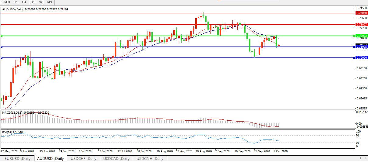 交易策略:0.7200下方看跌,目标0.7100、0.7000