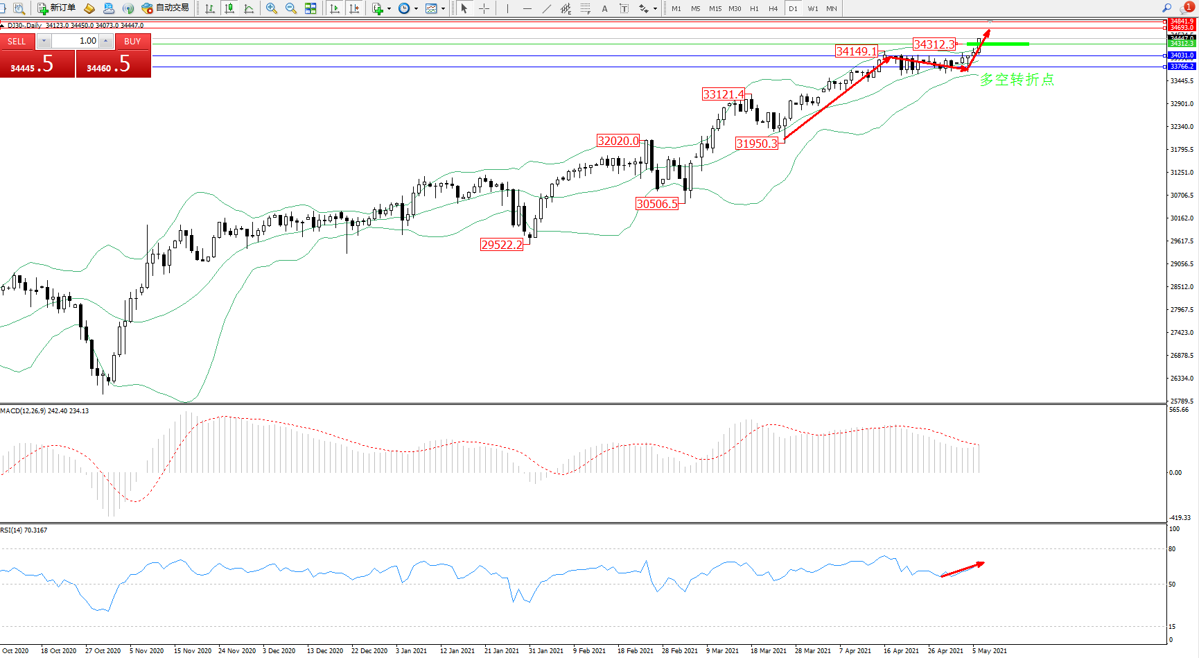 技术点评:多头动力延续布林带指标通道中上轨区间持续震荡上扬,高位屡破新高后遇阻整理平移,触及上轨附近节点后持续震荡上扬,布林带指标高位呈缓慢张口走势中,MACD指标处于多头区域维持整理移动,RSI指标处于多头区域维持震荡缓慢上移中;