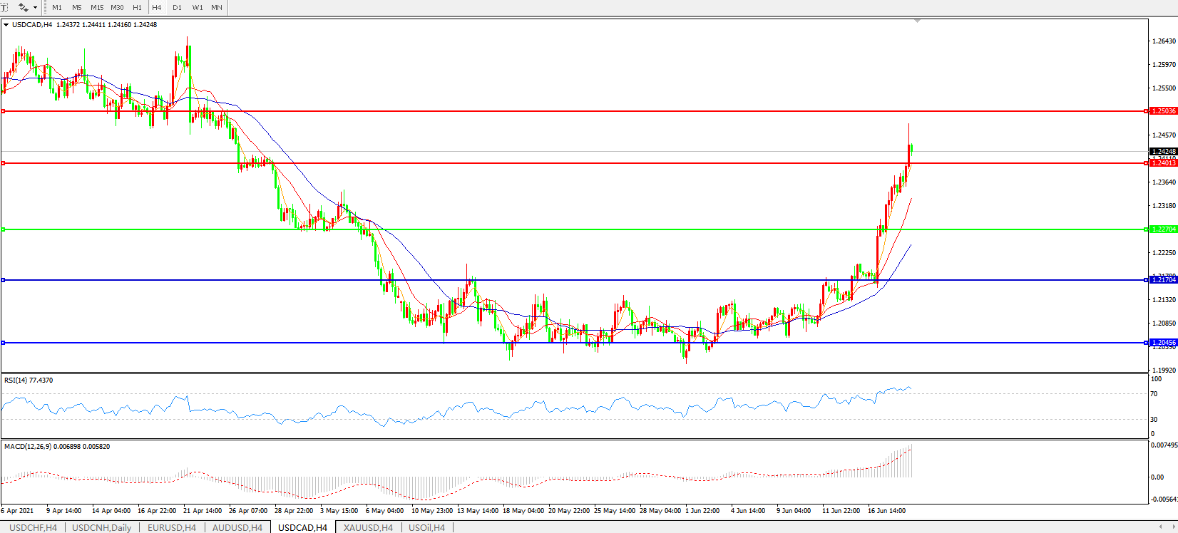 美元兑加元USDCAD 4小时图:
