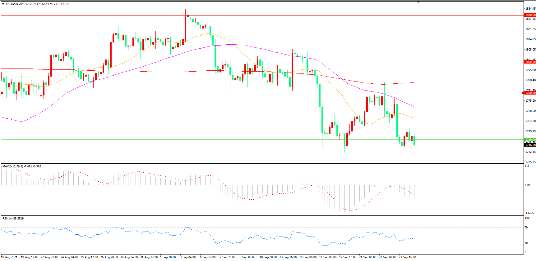 交易策略:在1750.00之下看跌,目标1720.00            1700.00
