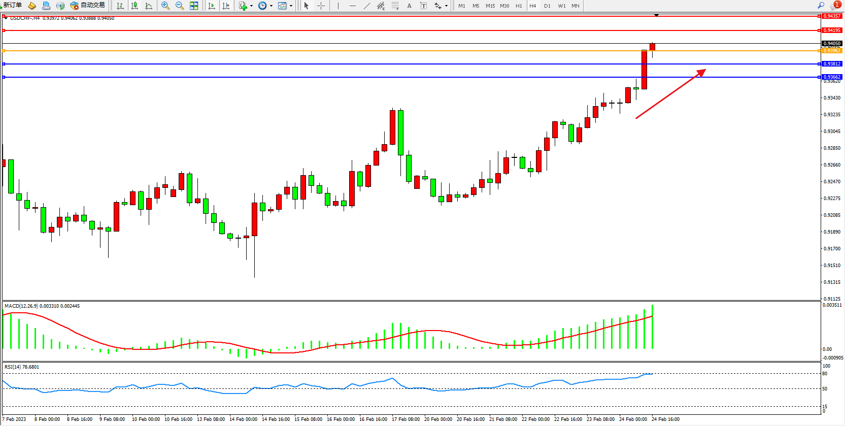 USDCHF:高位上扬
