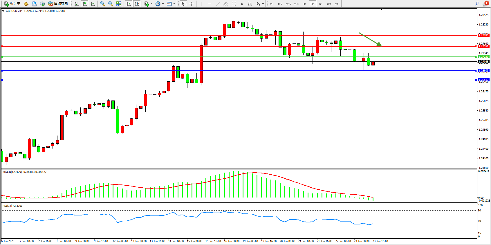 交易策略:1.27230下方看跌,目标1.26803 1.26517